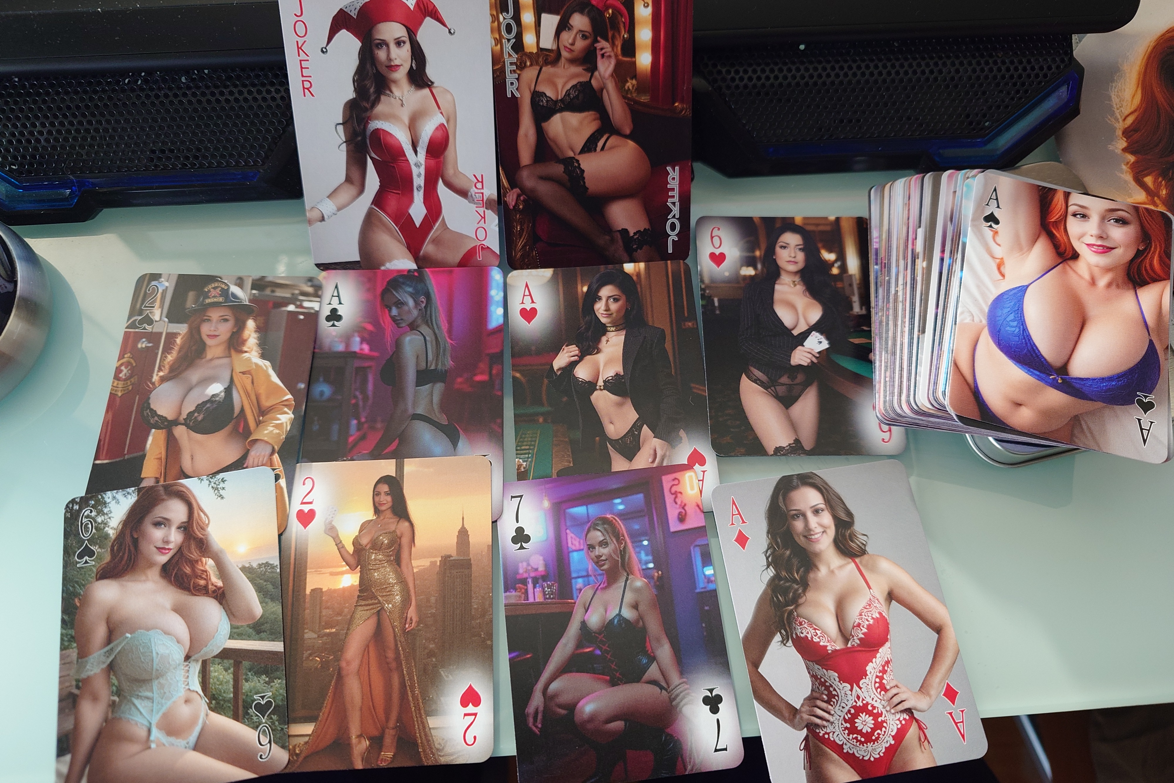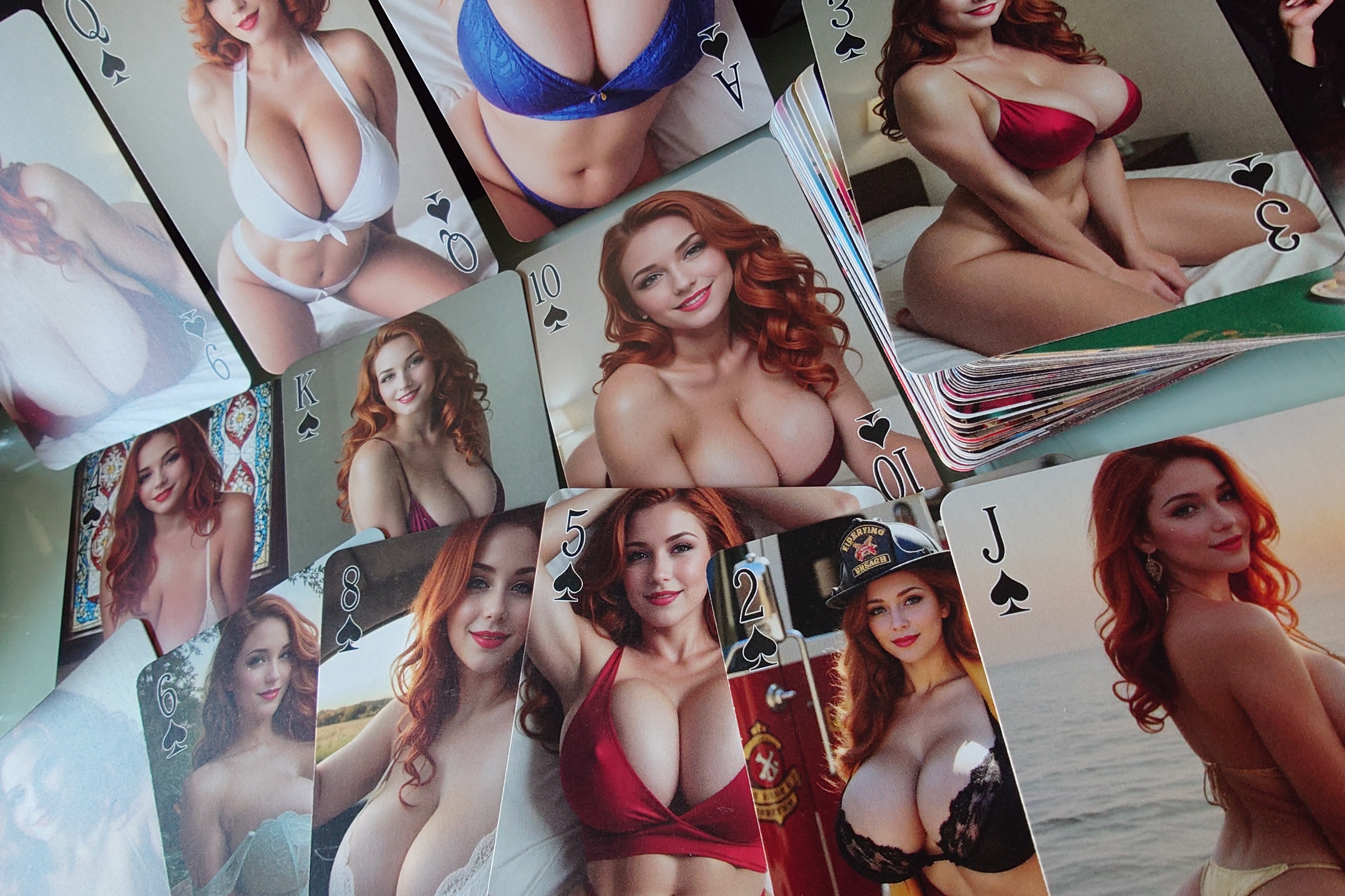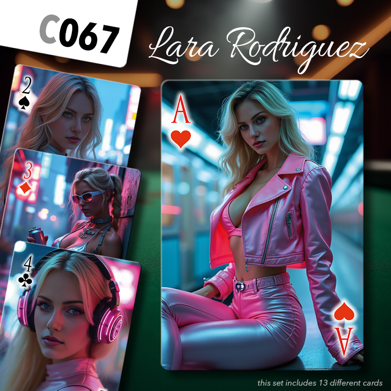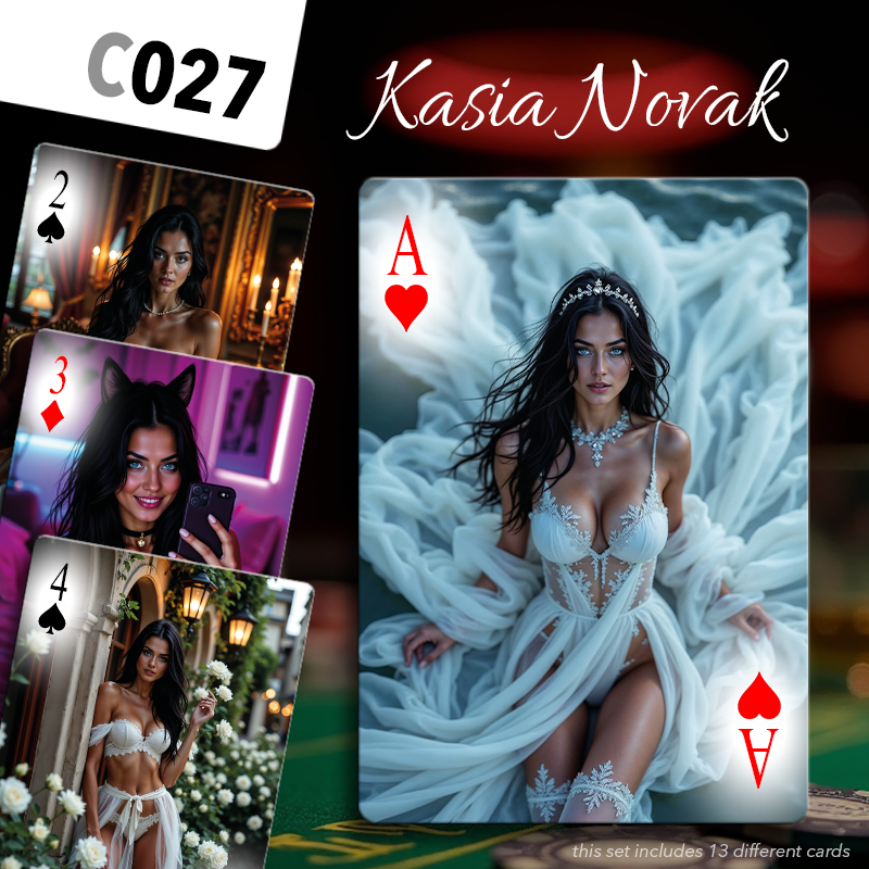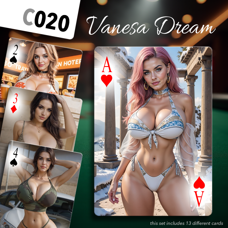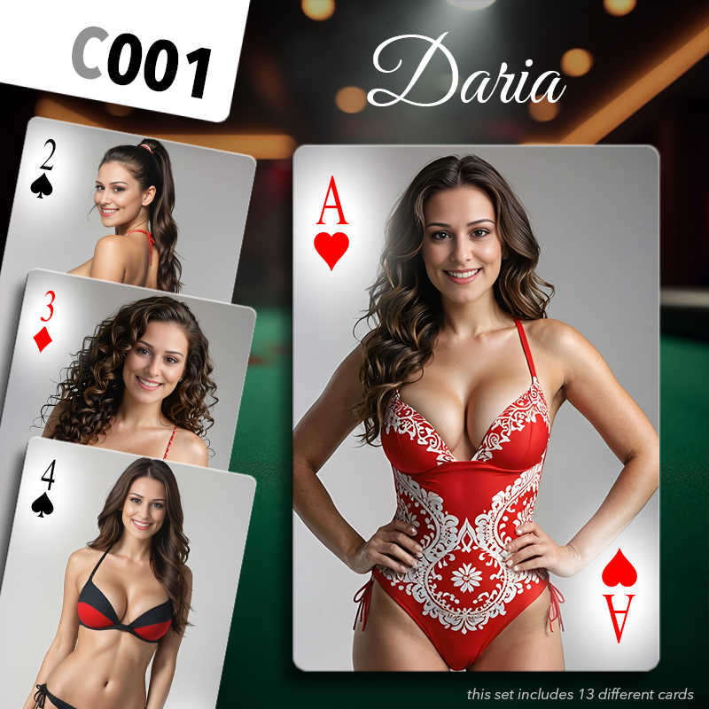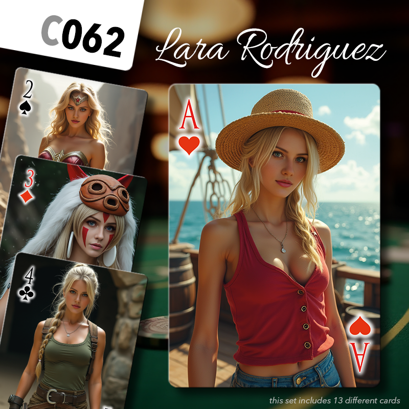 Choose a set of cards amongst those proposed below for each series (♥️♠️♦️♣️) of your deck. Mix and match to your pleasure, or be a hardcore fan and pick the same girl 4 times!