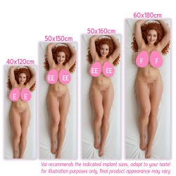 Yup, you read that right! Our optional silicone implants add real volume where it counts — from a subtle AA cup (400g) to a jaw-dropping F cup (1800g).