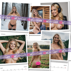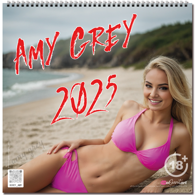 This calendar brings out her natural side, with Amy smiling and posing (yes, she's topless—a rare treat!) against stunning outdoor backdrops. Known as the “small gal in the big big AI-enhanced world,” Amy’s down-to-earth vibe shines through each page, giving you a refreshing, nature-filled view all year long. Perfect for anyone who loves seeing Amy’s easygoing spirit in a whole new light!