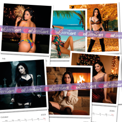 Each month showcases her in exotic, colorful settings where her proud black hair always steals the spotlight. From tropical vibes to bold landscapes, Angie brings a unique charm and energy to every scene. Perfect for those who love a mix of beauty and adventure, this calendar will brighten up any space!